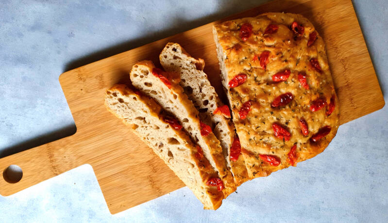 Deze focaccia is gemaakt van een desemstarter. Gebruik van een desemstarter geeft extra smaak aan je ...
