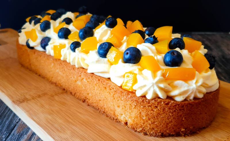 Slof met perzik en blauwe bessen