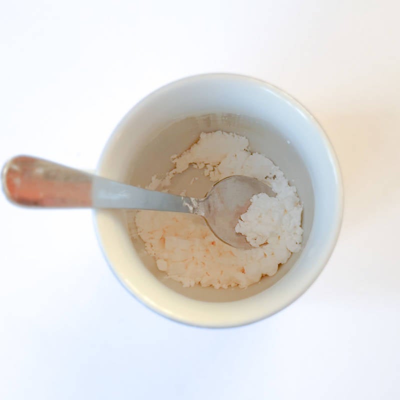- Roer het door. Als de Maïzena zich niet mooi door het water verdeeld, maar een klont vormt, moet je nog iets water toevoegen.