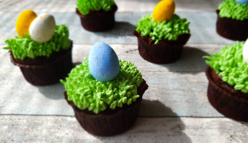 - Decoreer de cakejes met gras en paaseitjes! En genieten maar!